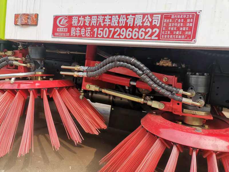 12、左右前刷盤可獨立或聯動:使車輛在工作中能夠有選擇地使用右前掃或左前掃工作,使得靠快車道一側的工作機構可在選擇左掃的情況下不伸出車體既減小了占道寬度,提高了作業和通行車輛的安全,又減少了掃刷的磨損,降低了運行成本。